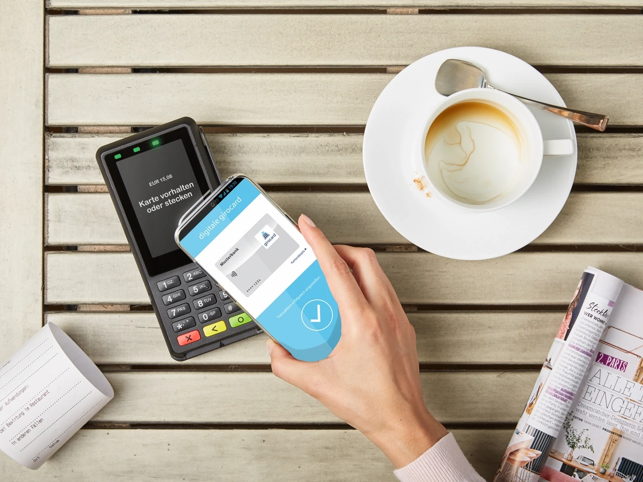Den nächsten großen Meilenstein setzten Terminals mit NFC-Technologie. Die Kommunikation zwischen Karte und Terminal erforderte kein Stecken der Karte mehr – das „Tappen“ der Karte an der vorgesehenen NFC-Schnittstelle genügte. Dies ebnete auch den Weg für neue Kartentechnologien, wie etwa digital hinterlegte Karten im Smartphone. Trotz anfänglicher Bedenken hinsichtlich unberechtigter Abbuchungen und Datenklau überwog der Komfort im Alltag und die Menschen fanden Gefallen an der Schnelligkeit des kontaktlosen Bezahlens.